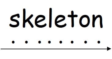 1570s, from Modern Latin sceleton “bones, bony framework of the body,” from Greek skeleton soma “dried-up body, mummy, skeleton,” from neuter of skeletos “dried-up,” from skellein “dry up, make dry, parch”